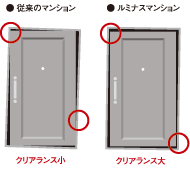 玄関ドアとドア枠の間に適度なクリアランスを設けることで地震の際のドアの歪みを抑制。いざという時にもドアが開き、避難経路が確保されます。